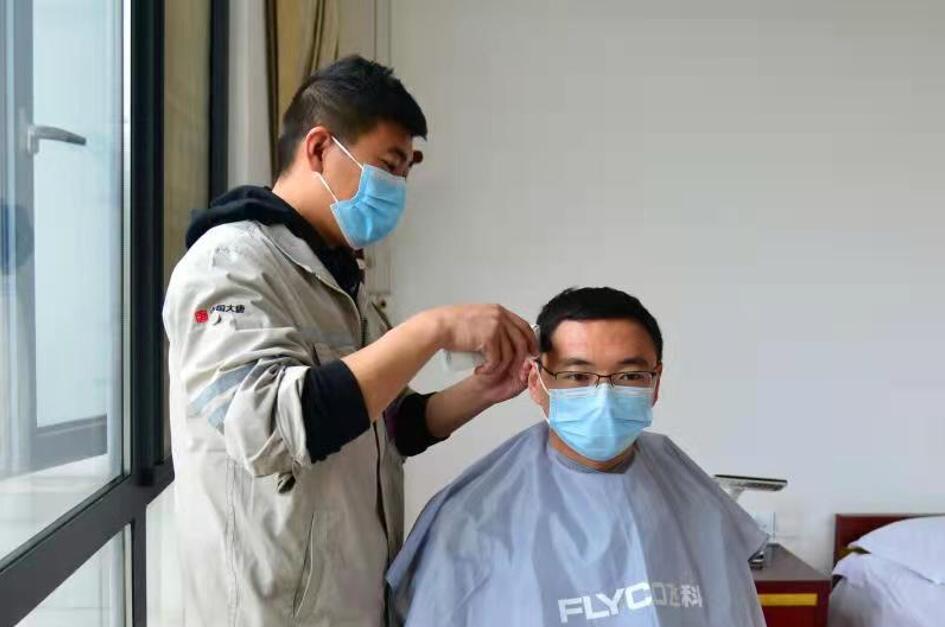 為堅守崗位的職工理發(付山/攝)